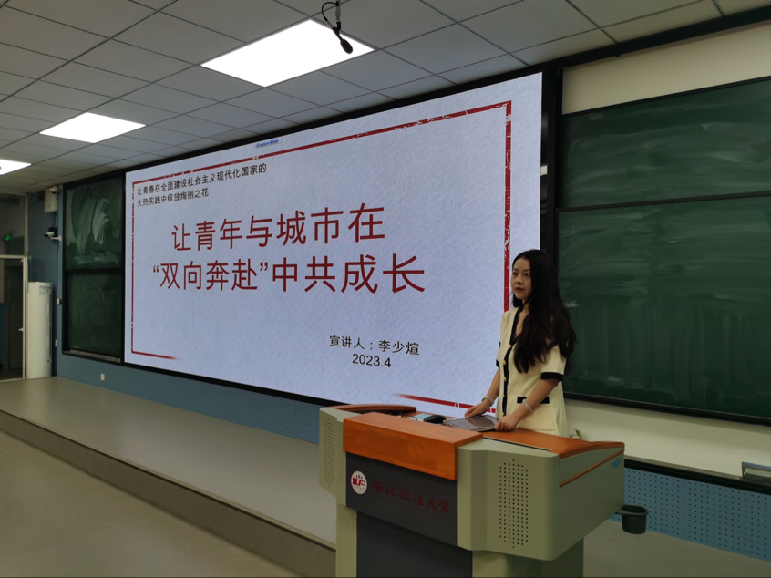 为全面深入学习领会党的二十大精神,发挥共青团作为党联系青年的枢纽作用、 引领凝聚青年、组织动员青年、联系服务青年。2023年4月21日上午,校二十大理论宣讲团成员吕浩然、董醒玉、王嘉慧、李少煊为我院学生进行宣讲。活动由马军强老师主持。