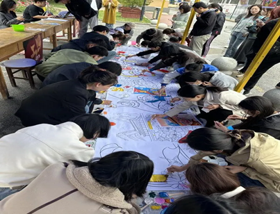 5月4日上午10点30分,西甲免费直播 于图书馆门口开展了“聚青年之火,燃时代之光”— 五四青年节共绘长卷活动,本次活动由西甲免费直播 学生会主办,雁塔校区80余名师生参与了本次活动。