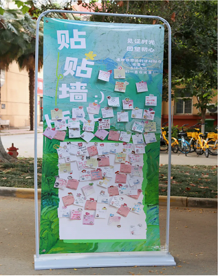 除了书信书写环节外,活动现场还设置了心愿纸条贴贴板,同学们用简洁的文字和温馨的图案表达着他们内心的期待与心愿,便利贴所承载着的真挚情感在展板上形成了一道亮丽的风景线,同学的心愿与期待终会实现。