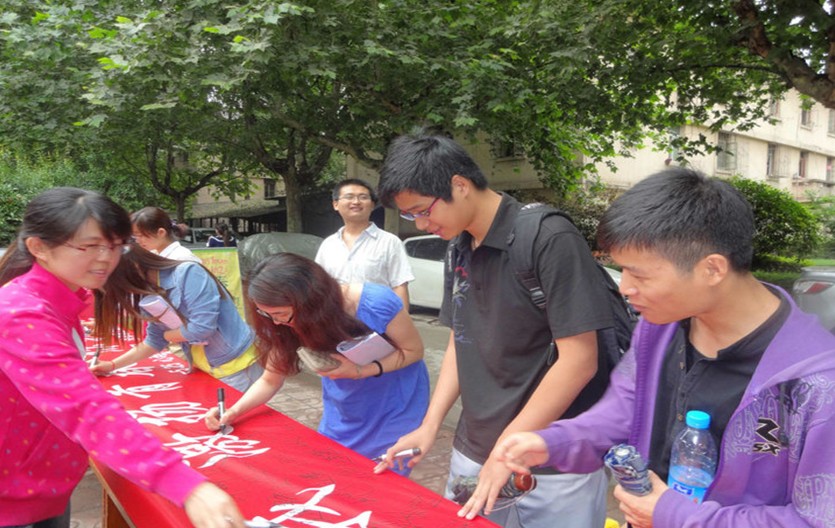 5月25日是一年一度的大学生心理健康日,5月24日中午,法律硕士教育学院学生会生活部在研究生综合大楼门前举行了“我爱我,激扬青春,你我共享”大学生心理健康签名活动。
