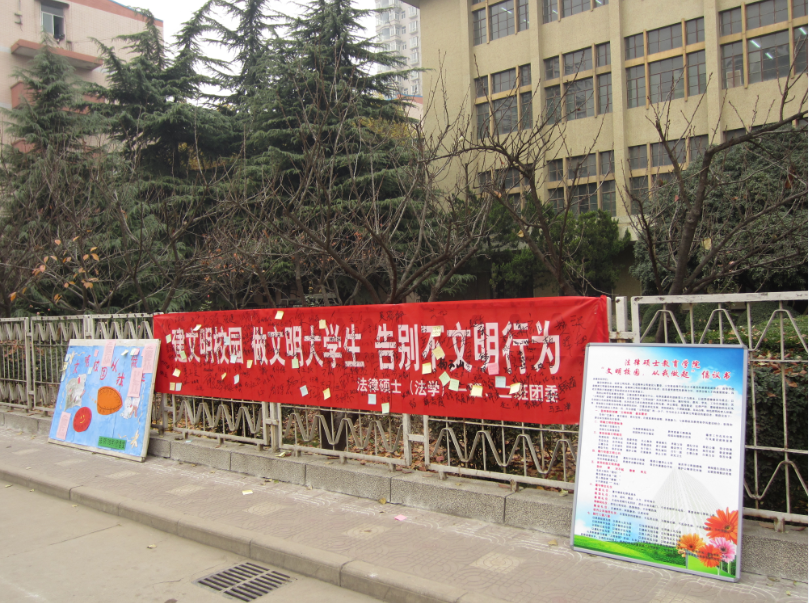 法硕学院“文明校园,从我做起”展板与条幅展示