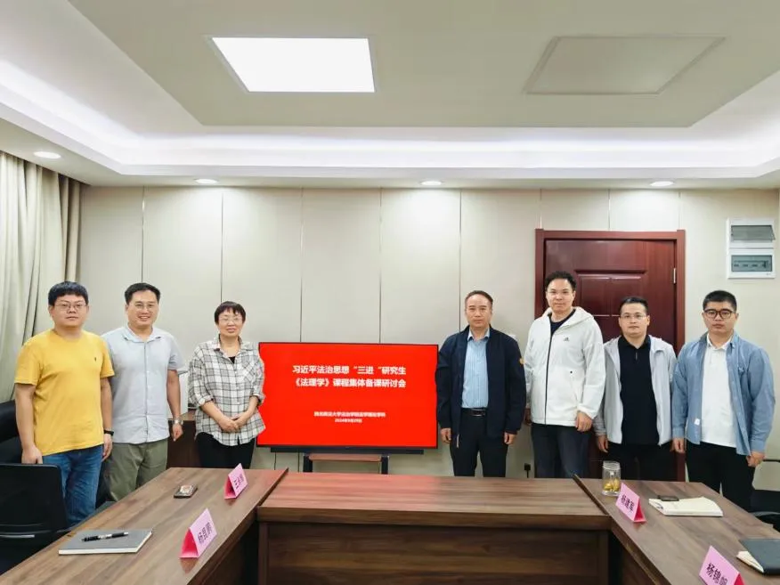 2024年9月29日上午,为学习贯彻习近平法治思想,提高法学理论研究生课程教学质量,推进习近平新时代中国特色社会主义思想“三进”工作,进一步规范法学理论课程教学要求,法学理论专业导师组在雁塔校区中楼习近平法治思想研究中心会议室举办集体备课教研活动。会议由法学理论导师组组长、学科带头人杨建军教授主持,法理理论专业7位教师参与研讨。