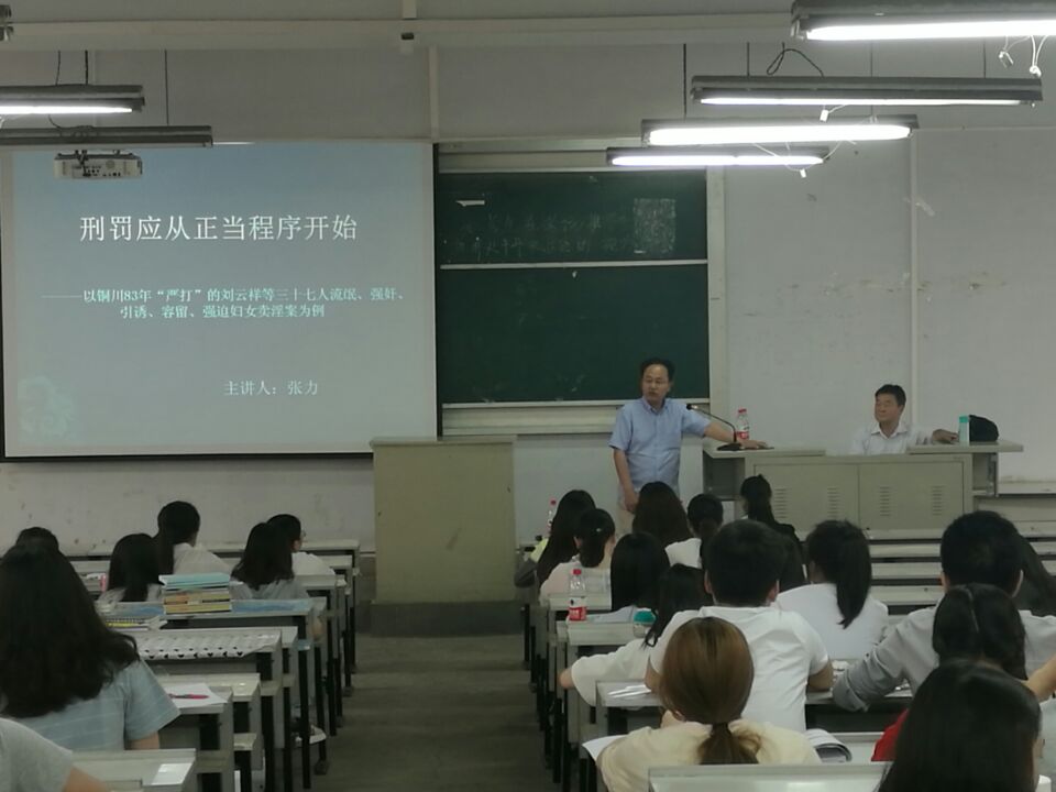 2017年6月7日下午15点,在西北政法大学雁塔校区3713教室举办了题为《刑法应从正当程序开始—以铜川83严打第一案刘云祥等37人流氓集团案为例反思法律程序虚无主义对我国司法的影响及改革的艰难》的学术讲座。本讲座由西北政法大学兼职教授(法律硕士导师)、铜川市人民法院原副院长张力教授主讲,西北政法大学法律硕士教育学院韩汉卿院长主持。