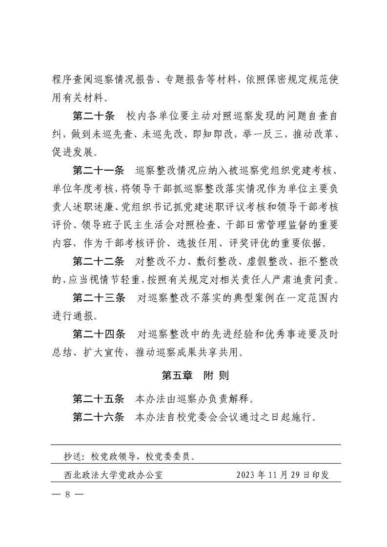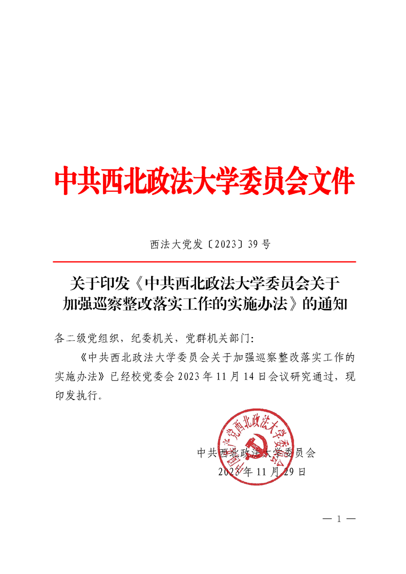 上一篇:关于印发《中共西北政法大学委员会巡察工作规划(2023-2027年)》的通知