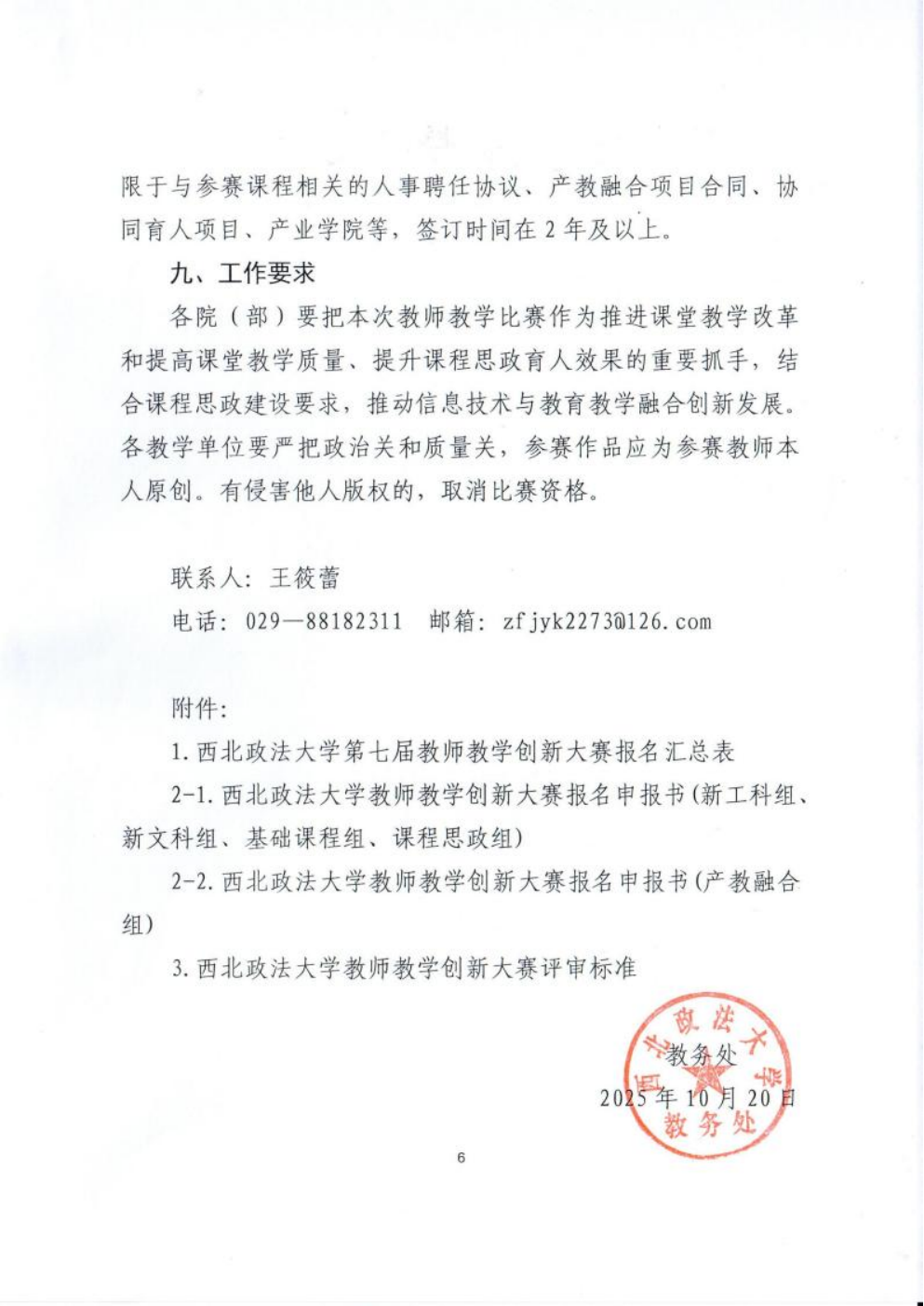 2.《西北政法大学教师教学创新大赛报名申报书》(见附件2-1/附件2-2)。