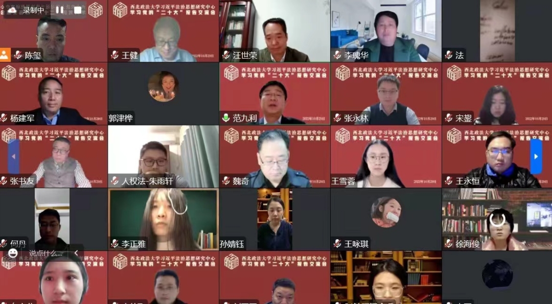 10月29日晚,学校习近平法治思想研究中心召开学习党的二十大报告线上交流会,习近平法治思想研究中心全体成员、学校教师代表以及部分硕士研究生参加会议。校党委副书记、校长,习近平法治思想研究中心主任范九利出席会议并讲话。会议由西甲直播 院长、习近平法治思想研究中心执行主任陈玺主持。