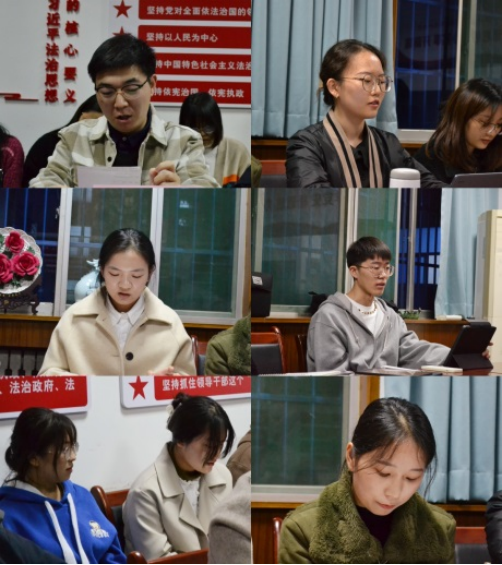 本次读书会分为报告和评议两个环节。报告环节,五位主报告人刘晨曦、唐玉、姚奇奇、孙禹杰、王飞宇围绕“活法”、桥阶问题、审判外因素、党的二十大报告等分享自己的观点和疑惑,与会报告人就法意识、守法精神、现代伦理道德等方面进行交流。