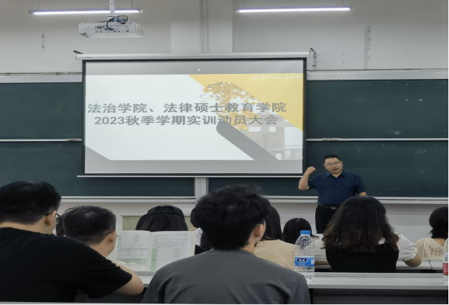 为进一步指导研究生做好实训前的各项准备工作,保证实训工作的顺利开展,我院于2023年9月5日上午在3J71教室召开实训动员大会。本次动员大会由副院长淡新昌老师主讲,辅导员李谦盛老师主持,2022级法律(法学)专业全体同学参加。