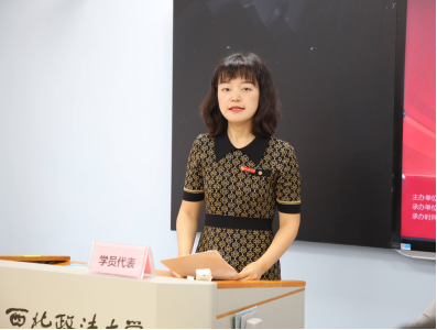西安市中级人民法院王晓清同志作为新学员代表发言,她代表全体新生向各位老师的辛勤付出表示了诚挚的感谢,也感恩西北政法大学为大家提供了良好的学习交流平台。借此研修提高的难得机会,互相学习,成为好同学、好伙伴,在今后的工作中构建一个更加广阔的学习交流平台。