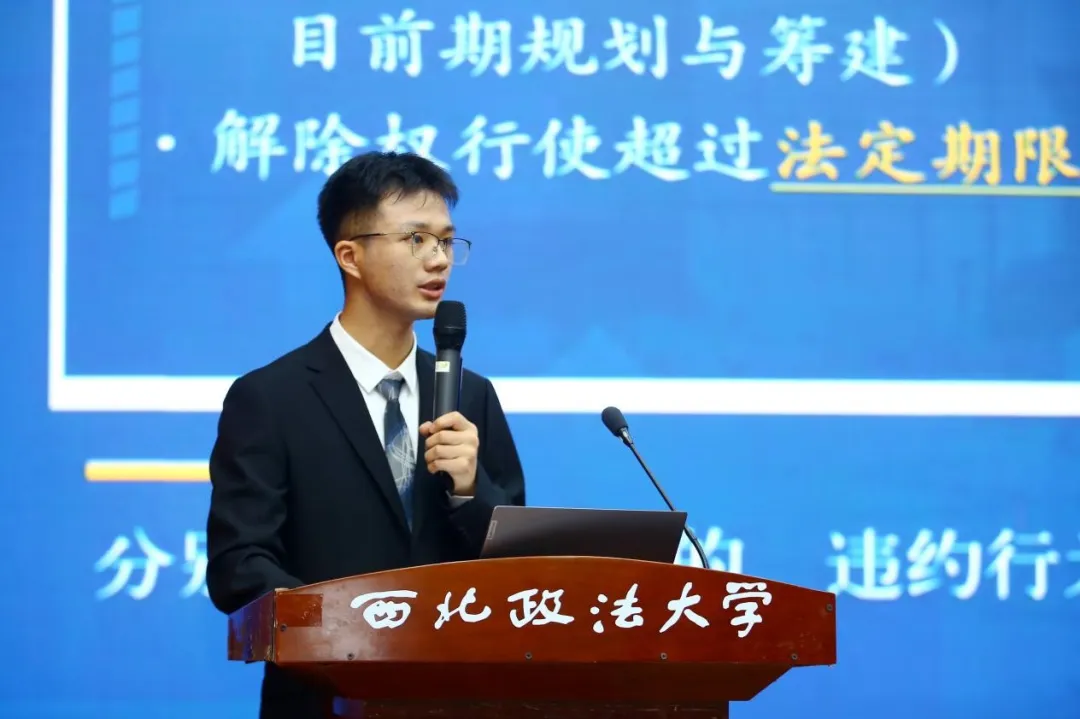 王娇雅代表北京安理(西安)律师事务所对所有获奖选手表示祝贺。她表示,高质量的法律文书是法治的具象化体现,法律文书严谨的逻辑和规范的格式是对法律严肃性的维护。她希望在校法学学子强化对法律文书写作的重视,切实提高个人法律理论和实践能力,勇于担当起时代赋予的重任,为法治事业的蓬勃发展贡献自己的青春力量。