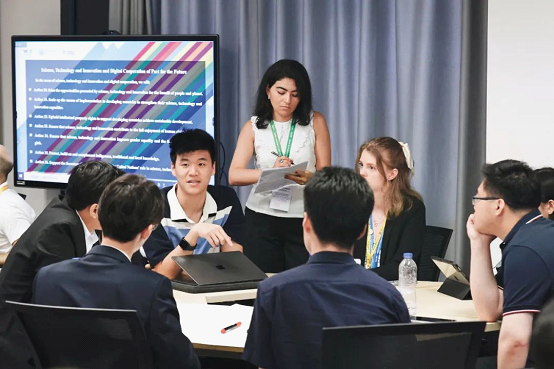 >>2024年8月13日,北京,“未来峰会”青年圆桌会在中国人民大学举办,中外青年代表围绕联合国未来峰会五个议题进行分组发言和讨论。图为中外青年围绕议题相互讨论。 中新社记者 王紫儒/摄