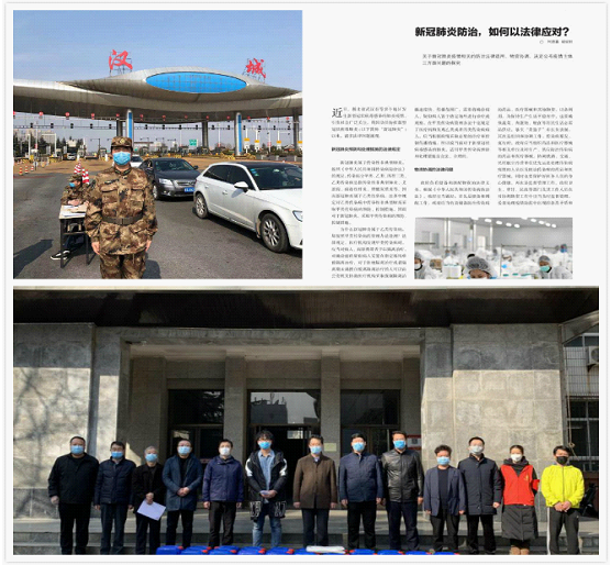 多措并举,有温度。学院紧抓官方微信、QQ群等网络阵地,发布《疫情之下:为什么不要提前返校》、《万众一心、抗击疫情》、《法律硕士教育学院关于延迟返校重要事项的通知》、疫情期间就业信息等主题推文;同时,各党支部、团支部也积极响应学校号召,先后开展了“为湖北加油”、“同心战‘疫’,共克时艰”党日、团日活动;此外,学院团委在全院学生中开展青年大学习,大力号召青年学生响应党的号召,在力所能及前提下,全面参与社区防控工作,踊跃投身社区疫情排查、收治、封控、服务等前沿阵地,争做抗击疫情“战斗员”。学院共计31名学生在湖北、河南、安徽、陕西、山西、河北、山东、四川、内蒙古9个省(市)担任青年防疫志愿者,充分彰显法硕学子的责任与担当。柯德鑫同学在《人民法治》(2020年2月上)发表文章《新冠肺炎防治,如何以法律效应对》,利用专业优势,为一线防疫建言献策;王星、张蓓蕾均为退伍军人,在疫情发生第一时间投入到当地志愿服务工作当中;王鹏同学组织学院多名学生向我校捐赠疫情防控物资,为我校疫情防控一线工作提供及时帮助。同学们通过实际行动彰显了我院学生爱国爱校情怀和责任担当意识。