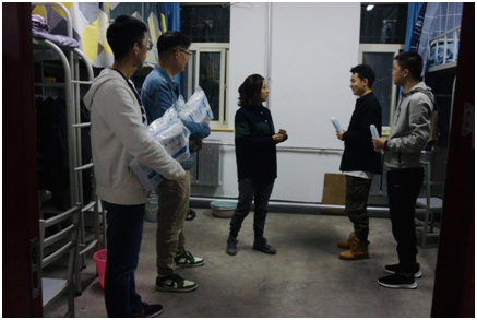 捐赠仪式结束后,我院党委副书记苏丹、2020级辅导员马军强老师进入学生宿舍,为每位同学发放10只口罩,同时也叮嘱同学们,在疫情防控常态化期间,提高防控意识,保障自身健康。