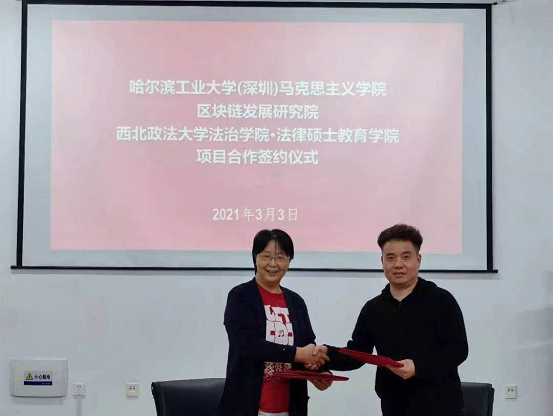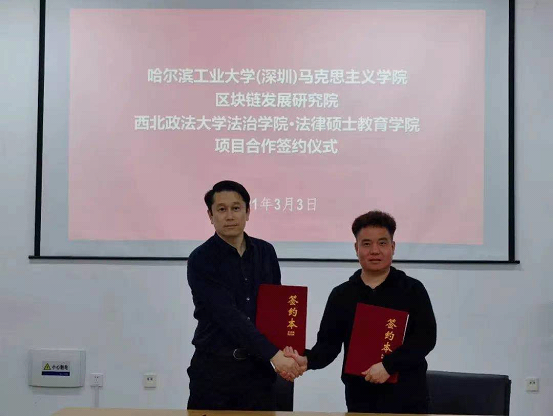 2021年3月3日,西北政法大学西甲免费直播 应邀前往哈尔滨工业大学(深圳),与哈尔滨工业大学(深圳)马克思主义学院、哈尔滨工业大学(深圳)区块链发展研究院就双方合作办学事宜进行交流并顺利签署了《战略合作协议》。