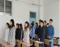 活动第二项,全体党员起立合唱《我和我的祖国》,同学们在歌声和视频中回顾历史,感受中国共产党带领中国人民砥砺前行,艰苦奋斗,攻坚克难的峥嵘岁月,了解新中国由站起来走向富起来的奋斗历程,展望中华民族迈向伟大复兴的宏伟蓝图。