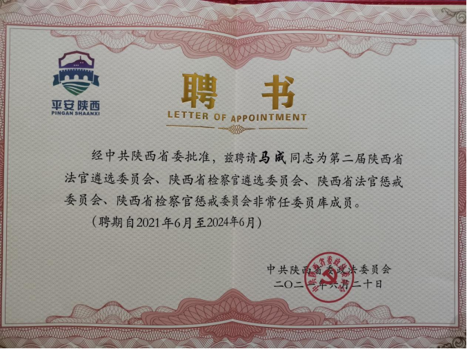 据悉,我院马成教授入选第二届陕西省法官遴选委员会、陕西省检察官遴选委员会、陕西省法官惩戒委员会、陕西省检察官惩戒委员会非常任委员库成员。